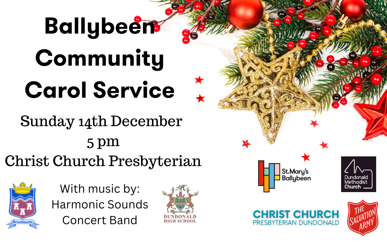 You are warmly invited to our Community Carol Service which will be held in Christ Church Presbyterian this year on Sunday 14th December at 5pm. There will be music from Harmonic Sounds Concert Band, Brooklands Primary School Choir and Dundonald High School Choir. We are looking forward to celebrating Christmas as a community. Please plan... Read more »